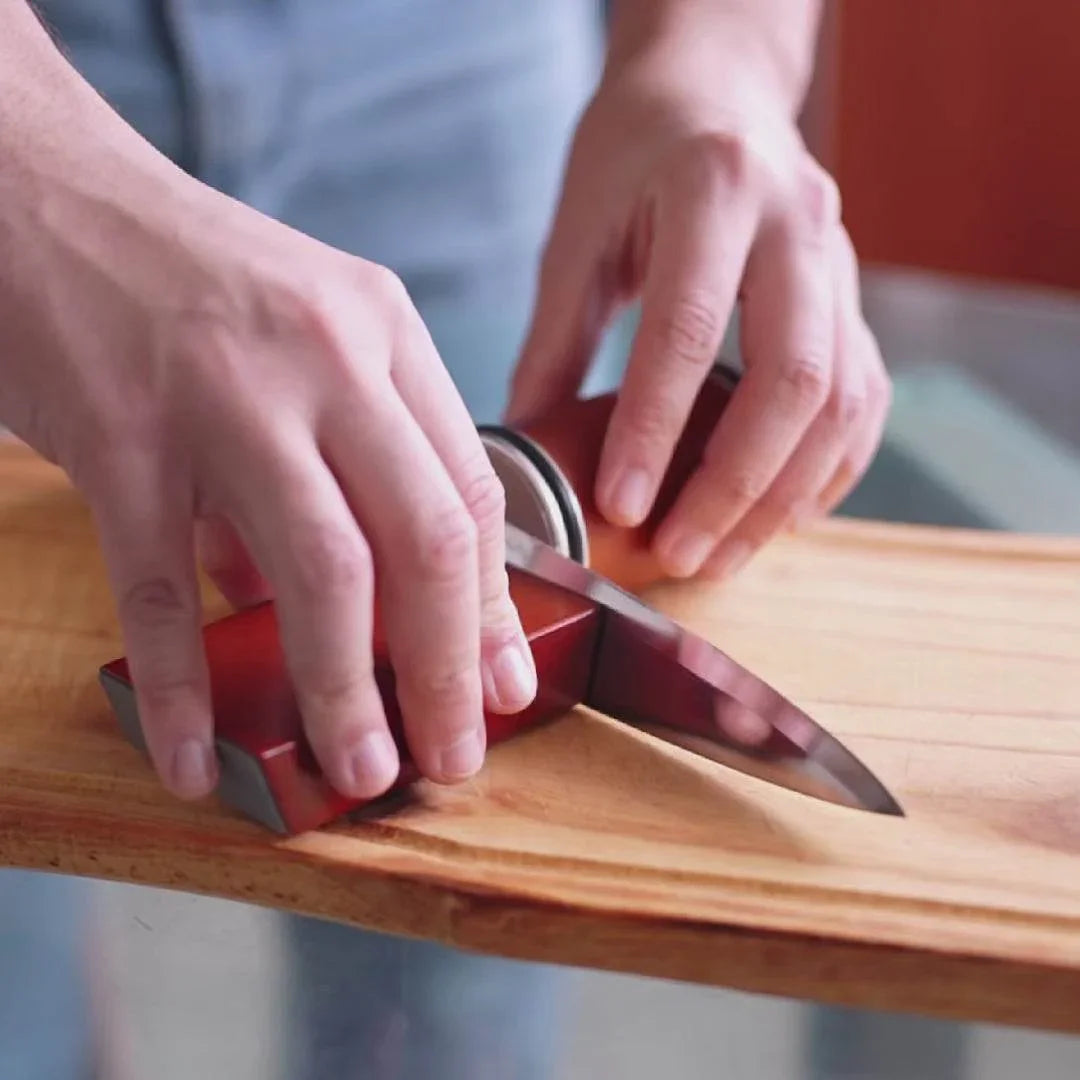 El afilador me pareció muy simple de usar, lo probé con todos los cuchillos viejos y quedaron impecables, estoy conforme.